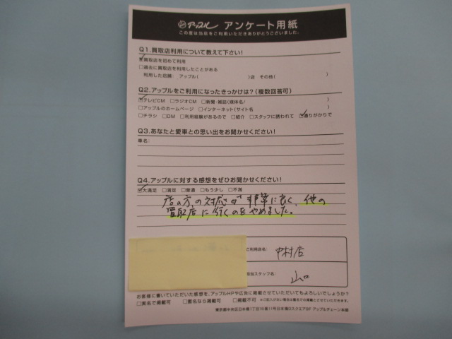 お車のご相談・ 査定だけでもOK! カンタン 入力 30秒 アップルがブランド買取始めました! お電話でも受付中! 受付時間10:00 ~ 19:00 052-483-1181 お車のご相談・ 査定だけでもOK! カンタン 入力 30秒 アップルがブランド買取始めました! お電話でも受付中! 受付時間10:00 ~ 19:00 052-483-1181 アップルがブランド買取始めました! お電話でも受付中! 受付時間10:00 ~ 19:00 052-483-1181 店舗情報 在庫車 スタッフ紹介 ブログ お客様の声 キャンペーン 無料査定 click お客様の声 ご記入日: 2019/02/25 T(男性)様 店の方の対応が非常に良く、他の買取店に行くのをやめました。 前へ 次へ お客様の声一覧を見る