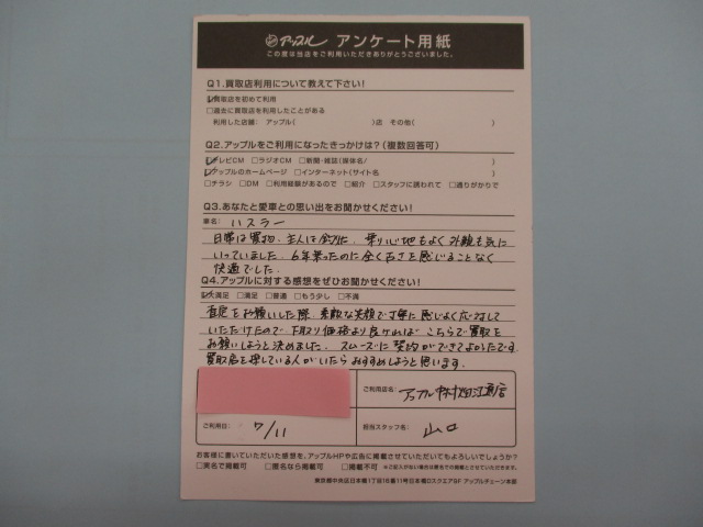 スムーズに契約ができてよかったです。買取店を探している人がいたらおすすめしようと思います。