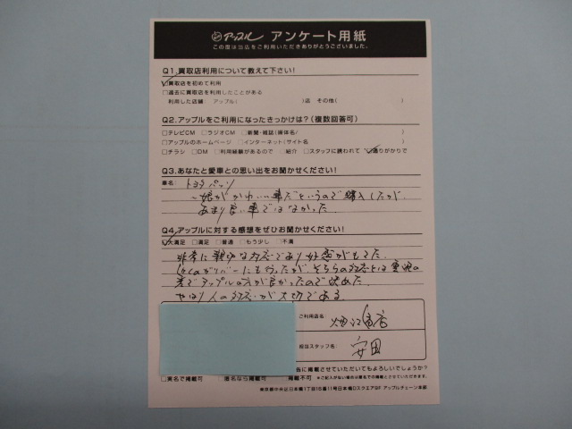 お車のご相談・ 査定だけでもOK! カンタン 入力 30秒 アップルがブランド買取始めました! お電話でも受付中! 受付時間10:00 ~ 19:00 052-483-1181 お車のご相談・ 査定だけでもOK! カンタン 入力 30秒 アップルがブランド買取始めました! お電話でも受付中! 受付時間10:00 ~ 19:00 052-483-1181 アップルがブランド買取始めました! お電話でも受付中! 受付時間10:00 ~ 19:00 052-483-1181 店舗情報 在庫車 スタッフ紹介 ブログ お客様の声 キャンペーン 無料査定 click お客様の声 ご記入日: 2020/07/26 U(男性)様 非常に親切な対応であり好感がもてた。他社にも行ったが、そちらの対応とは雲泥の差でアップルの方が良かったので決めた。やはり人の対応が大切である。 前へ 次へ お客様の声一覧を見る