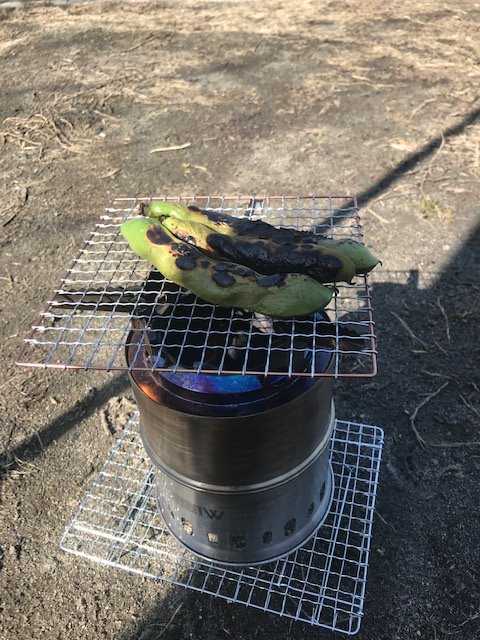 小さめの焚火台でそら豆を焼いたり
