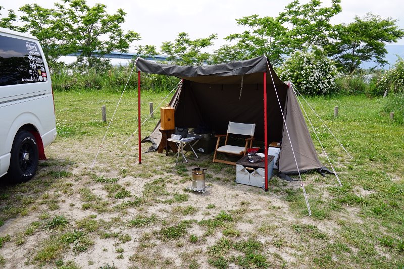 五月なのに気温が高く設営だけで汗だくに・・・