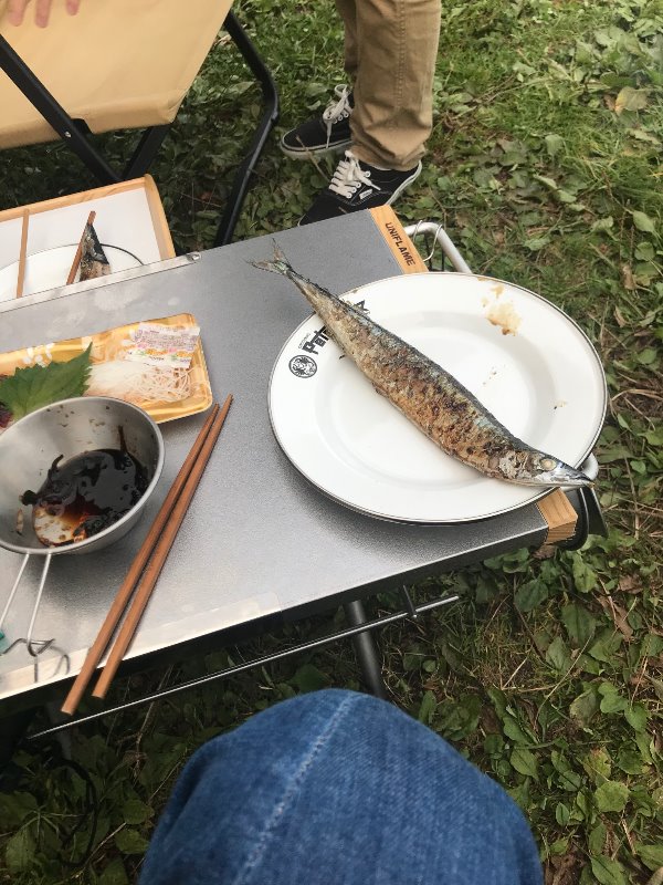 炭火でさんまを焼いたりストーブで豚汁を作りました。