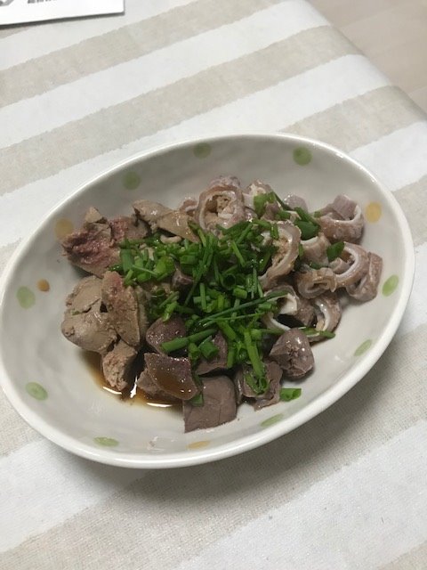心臓、肝、胃袋のポン酢和え