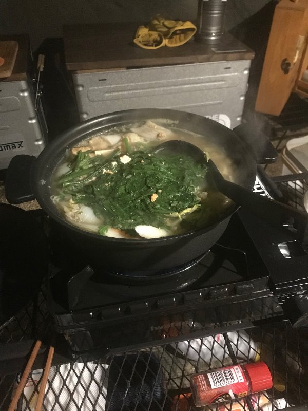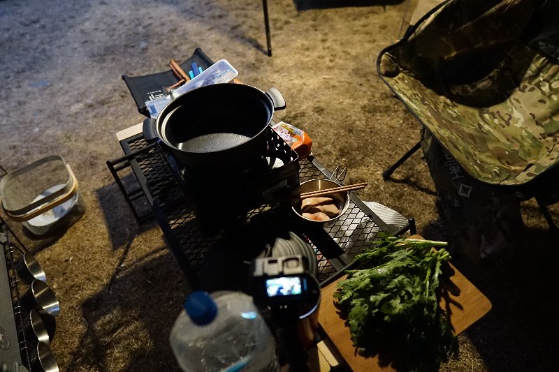 暗くなってきたので幕の中で鍋を作っていきます~