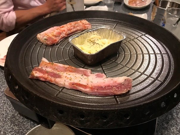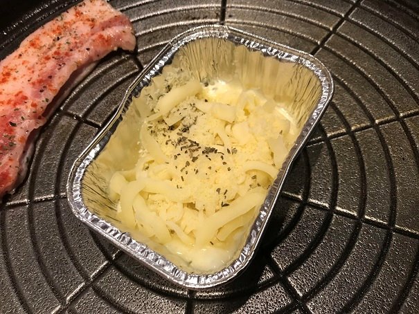 (とろとろに溶けていきます、そしてこのチーズのプールにサムギョをIN!!!)