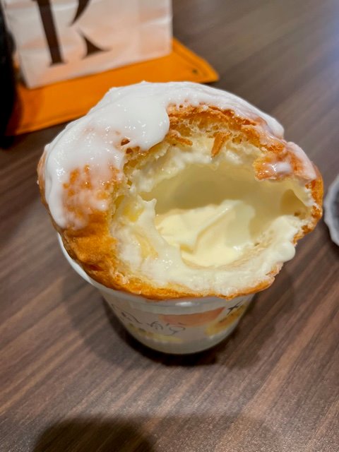 3つの食感が楽しめるカップシュークリームです♪(1個180円)