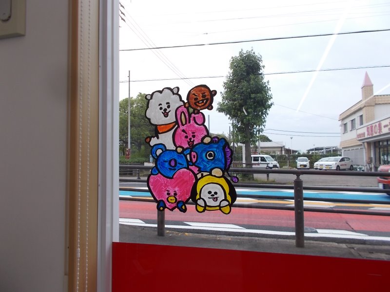 大谷店長が何やら窓に描いているようです(*'ω'*)