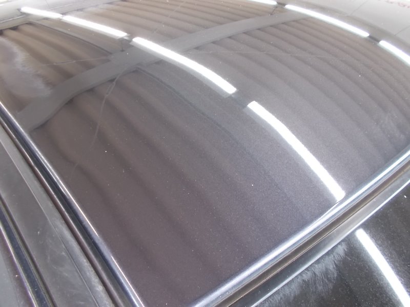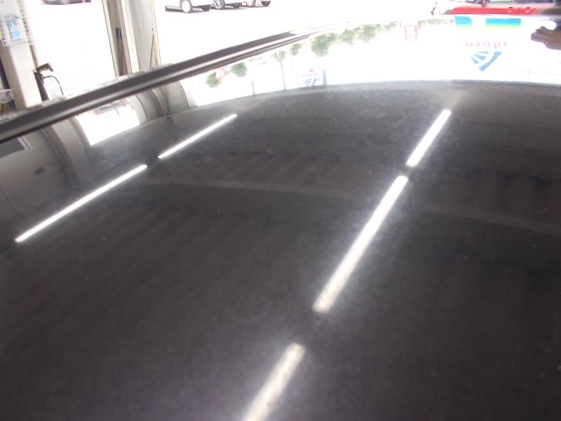 (磨く前の写真です。ピンボケしていますが蓄積した雨染みでルーフがくすんでいるように見えます)