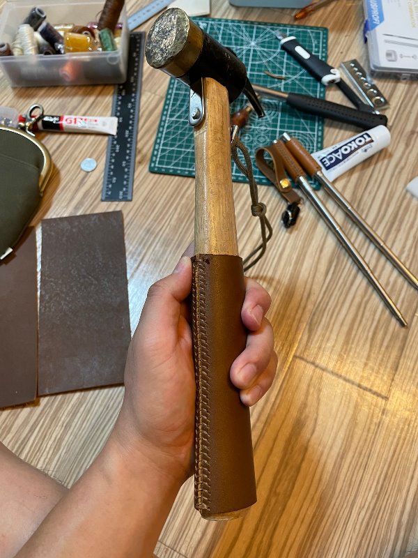 今回はペグハンマーの持ち手をレザー巻にしたのと