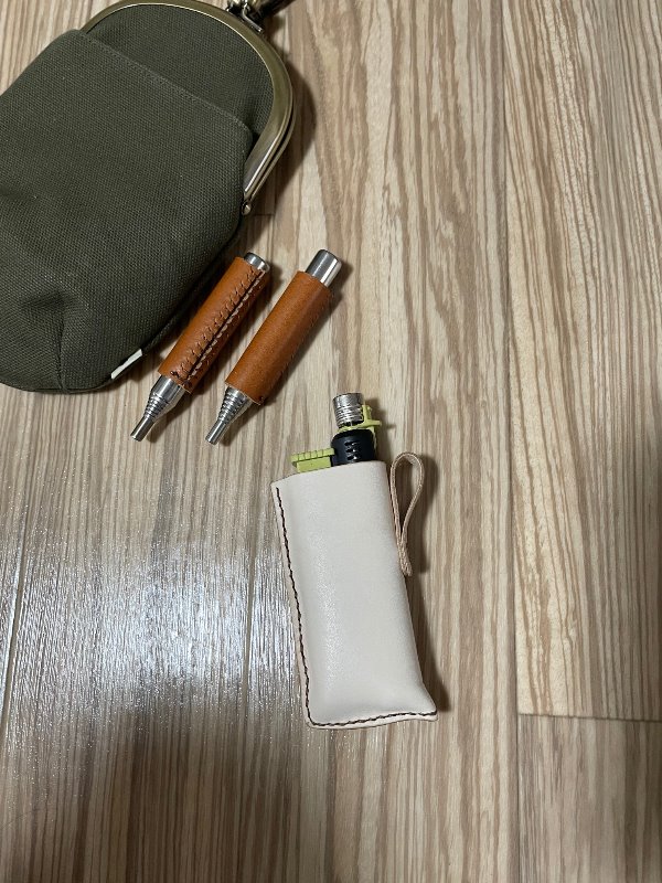 真ん中に写っている箸の様なものは火吹き棒となります。これは既に完成してますがこちらもレザーを巻いてます。