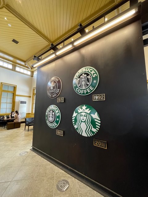 (歴代スターバックスのロゴが!ずいぶんデザイン変わっているんですね)