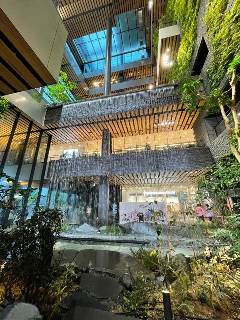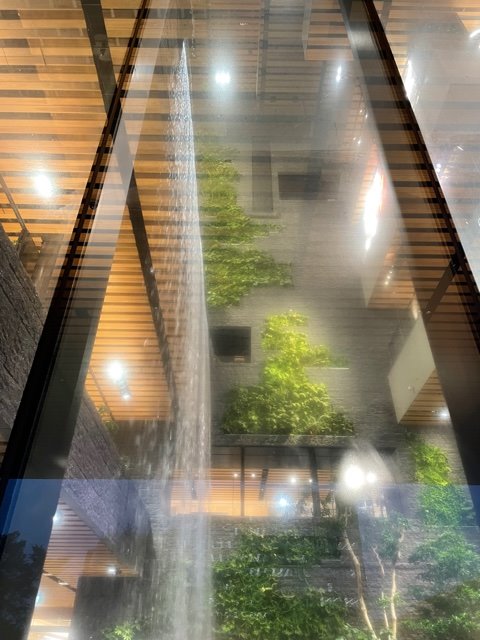 吹き抜けに人工の滝があります↓( ゚Д゚)↓