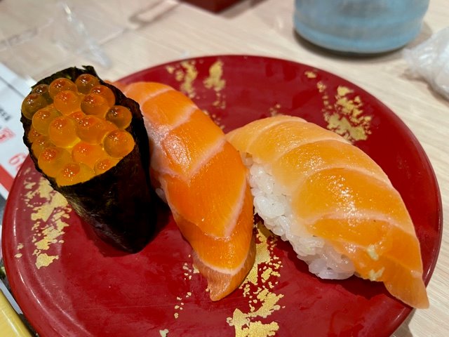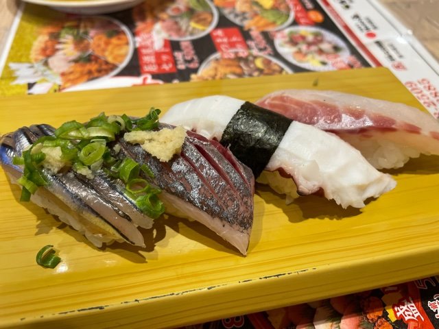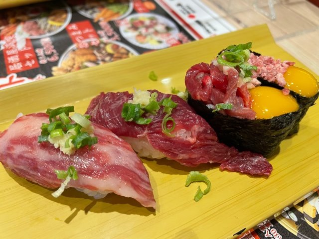 (熊本といえば馬刺し!! 今回はお寿司で食べ比べ3貫セットをいただきました)