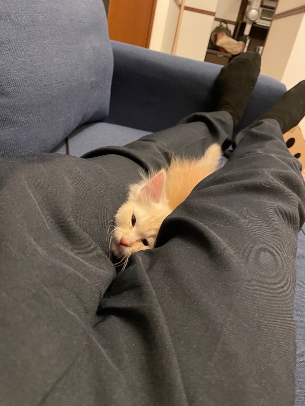 ソファでくつろいでいるとお股に入り込んできます(笑)