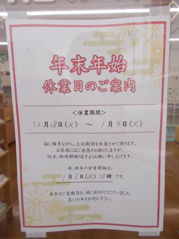 (12/28~1/4まで年末年始休業とさせて頂きます)