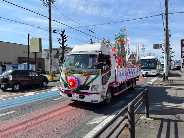 写真は前日の大鏡餅の奉納へ向かう途中の様子です。