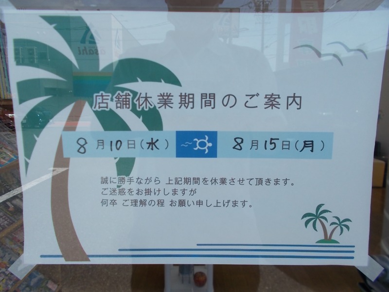 (8/10~8/15は夏季休業となります、ご理解の程宜しくお願い致します。)