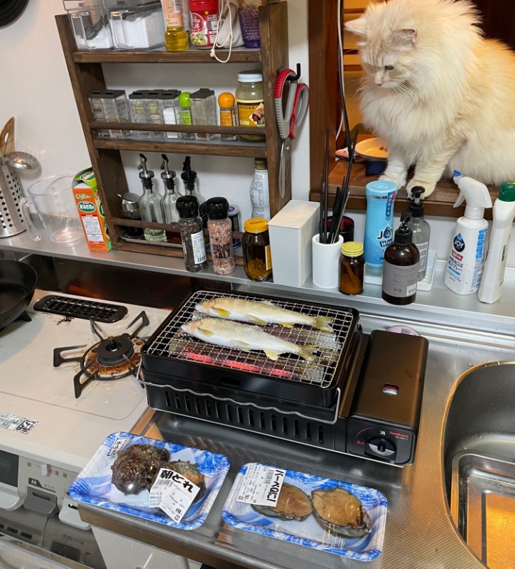 早速スーパーで食材を調達して換気扇の下で炉端焼き!