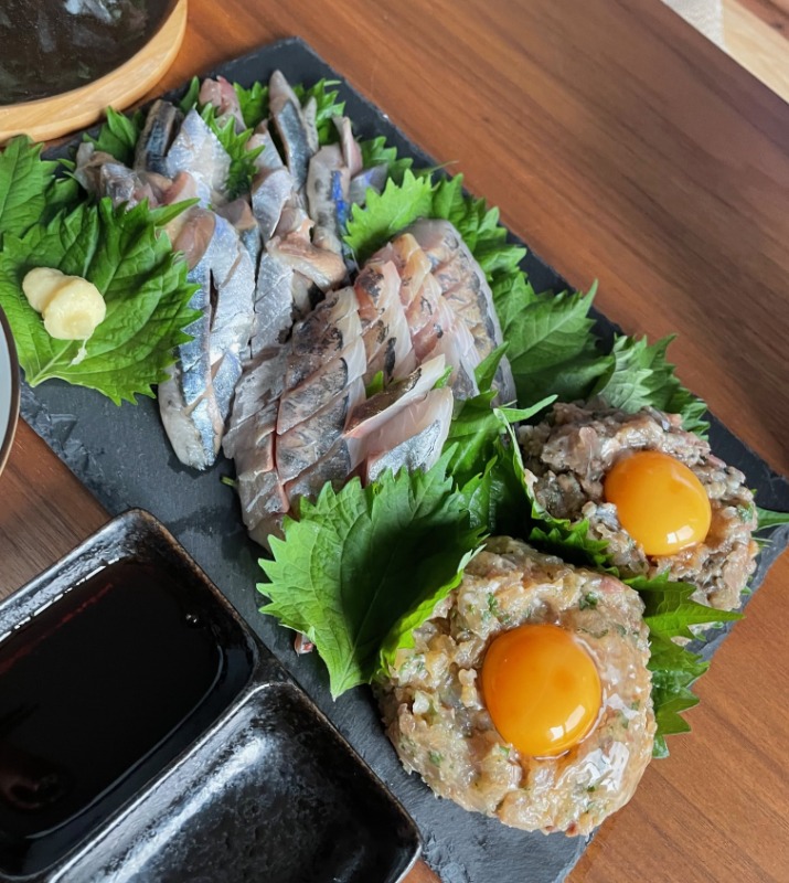 秋刀魚と鯵のお刺身となめろうです(*´▽`*)