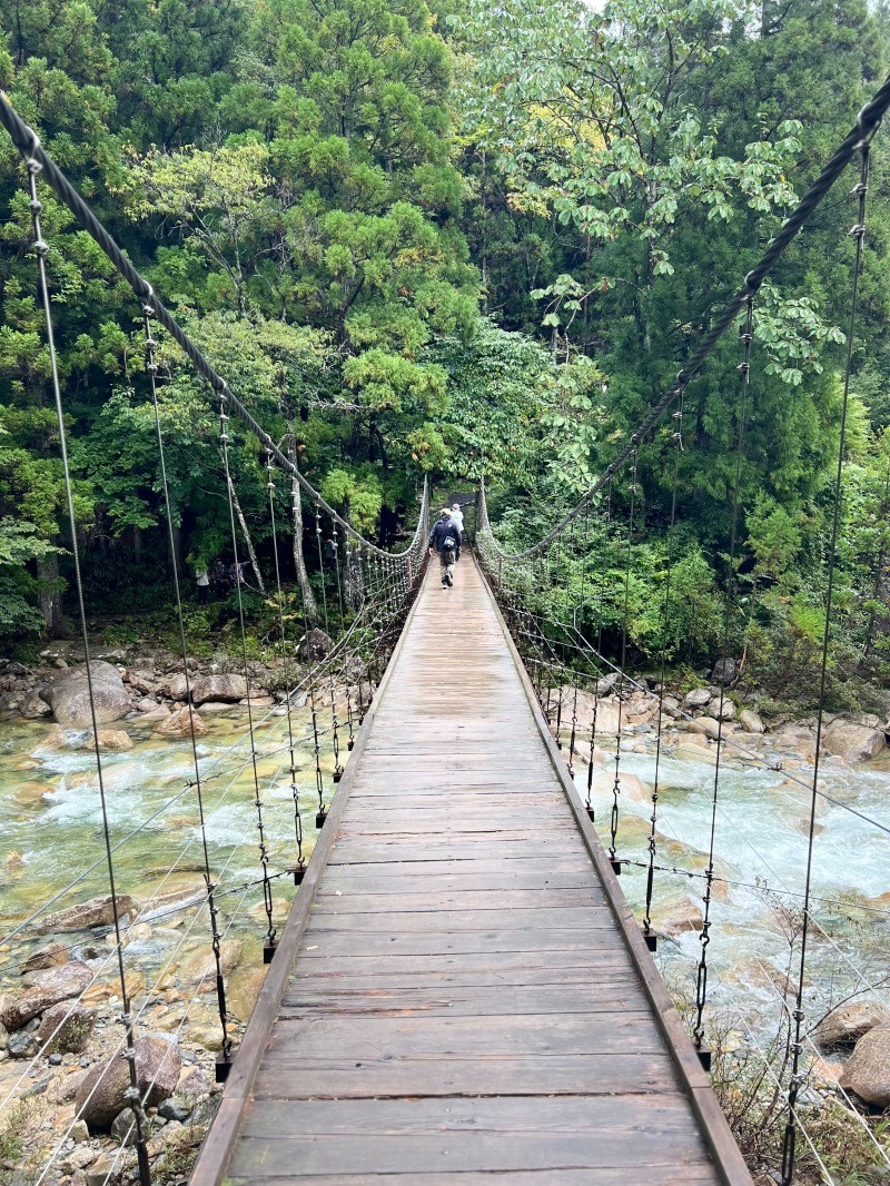 荷物を置いて『恋路橋』という吊り橋を渡り