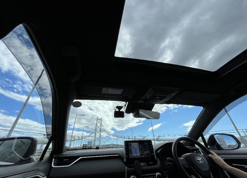 天井のパノラマルーフからも明石海峡大橋の橋つくりが良く見えて