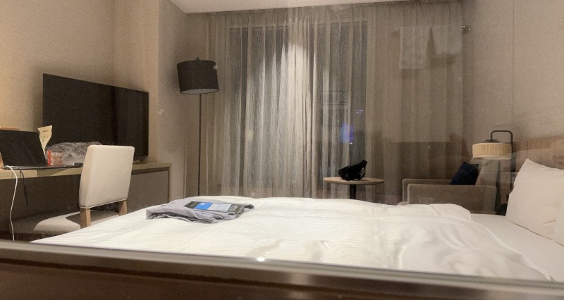 お部屋が見えます=ベッドからお風呂が丸見え、です(笑)