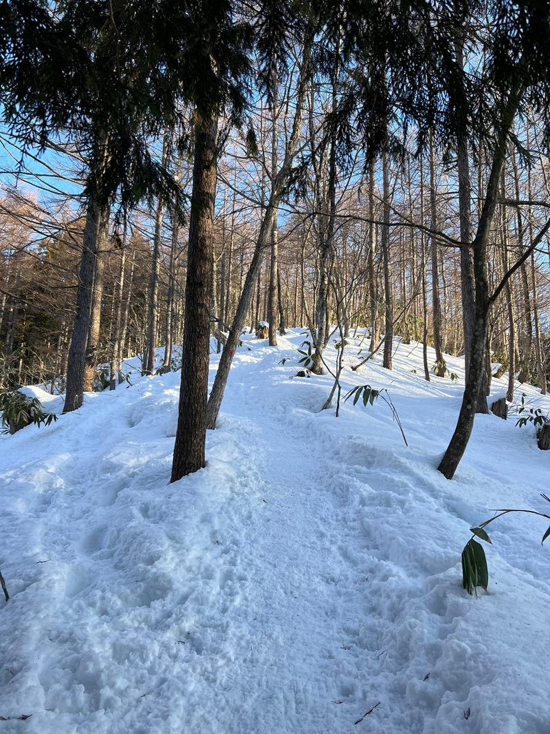 しっかり雪があるので軽アイゼンもしくはしっかりしたアイゼンが必要です☆