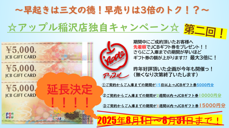 8/31まで行っておりましたアップル稲沢店独自のキャンペーンを