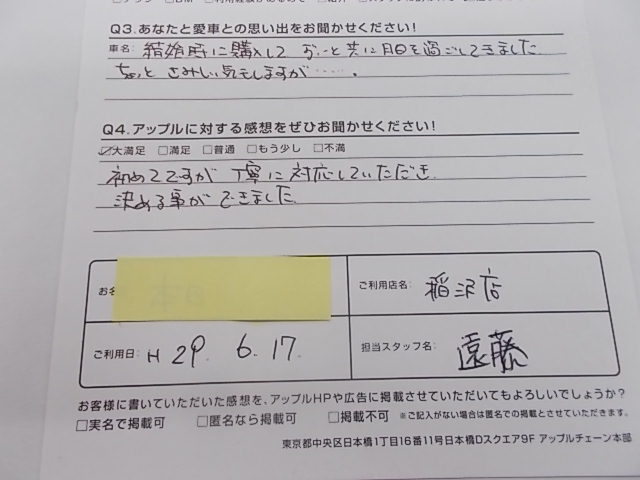 お車のご相談・ 査定だけでもOK! カンタン 入力 30秒 アップルがブランド買取始めました! お電話でも受付中! 受付時間10:00 ~ 19:00 0587-21-0040 お車のご相談・ 査定だけでもOK! カンタン 入力 30秒 アップルがブランド買取始めました! お電話でも受付中! 受付時間10:00 ~ 19:00 0587-21-0040 アップルがブランド買取始めました! お電話でも受付中! 受付時間10:00 ~ 19:00 0587-21-0040 店舗情報 在庫車 スタッフ紹介 ブログ お客様の声 キャンペーン 無料査定 click お客様の声 ご記入日: 2017/06/17 匿名様 初めてですが、丁寧に対応していただき、決める事ができました。 前へ 次へ お客様の声一覧を見る