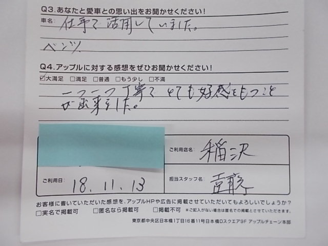 お車のご相談・ 査定だけでもOK! カンタン 入力 30秒 アップルがブランド買取始めました! お電話でも受付中! 受付時間10:00 ~ 19:00 0587-21-0040 お車のご相談・ 査定だけでもOK! カンタン 入力 30秒 アップルがブランド買取始めました! お電話でも受付中! 受付時間10:00 ~ 19:00 0587-21-0040 アップルがブランド買取始めました! お電話でも受付中! 受付時間10:00 ~ 19:00 0587-21-0040 店舗情報 在庫車 スタッフ紹介 ブログ お客様の声 キャンペーン 無料査定 click お客様の声 ご記入日: 2018/11/13 匿名様 一つ一つ丁寧でとても好感をもつことが出来ました。 前へ 次へ お客様の声一覧を見る