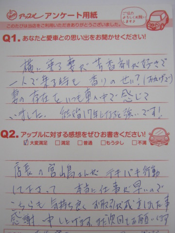 店長の宮嶋さんがテキパキ行動して下さって、本当に仕事が早いのでこちらも気持ちよくお取引が成立しました事、感謝申し上げます。また次回もお願いします。