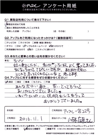 私の方こそ、K様と娘様の思い出の1台をお譲り頂きましてありがとうございました。