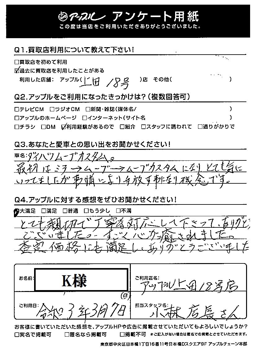 K様 車名:ダイハツ ムーヴ