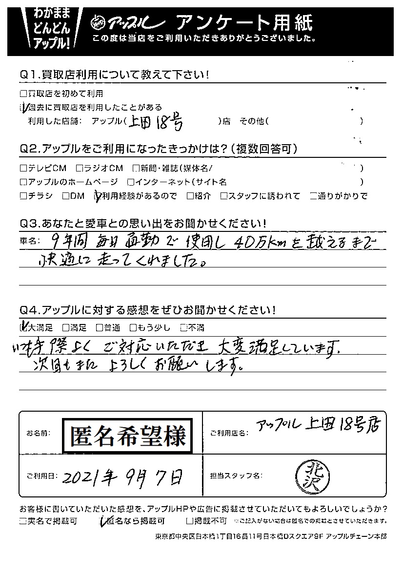 9年間毎日通勤で使用し40万kmを超えるまで