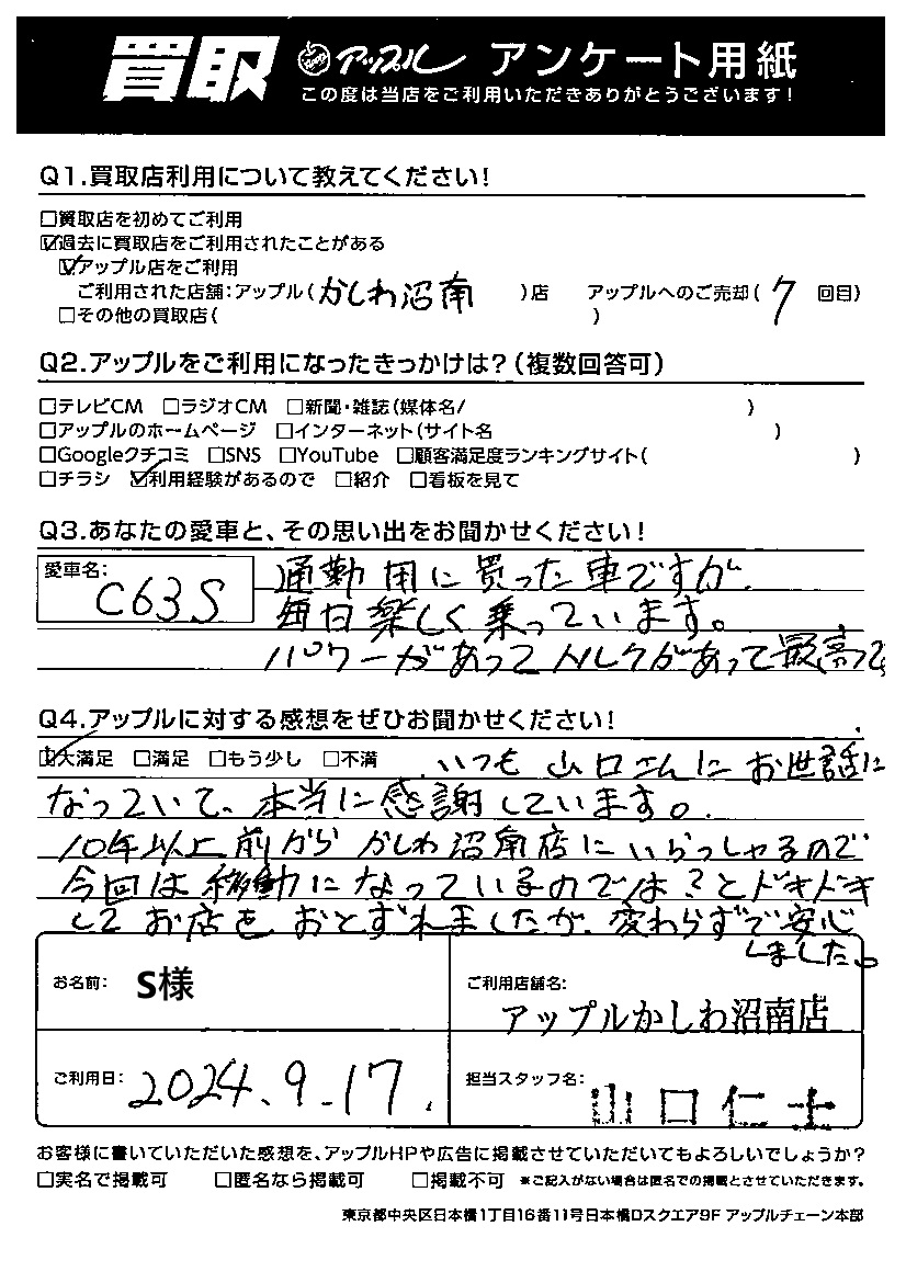 S様 車名:メルセデスAMG Cクラス