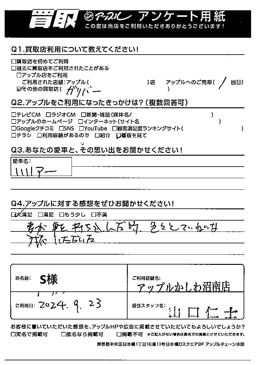 妻が車を持ち込んだ時、色々と丁寧な対応いただいた。