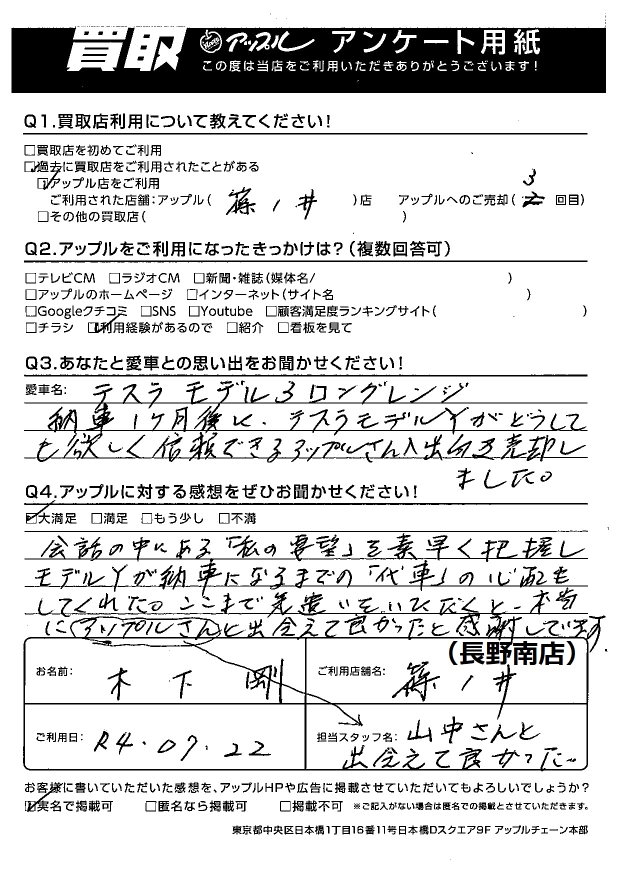 納車1ヶ月後に、テスラモデルYがどうしても欲しくて信頼できるアップルさんへ出向き売却しました。