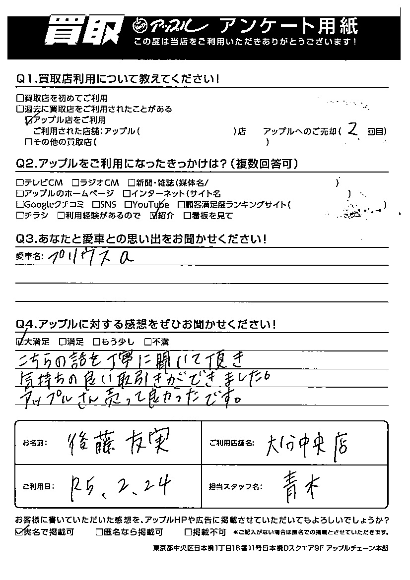 後藤 友実様 車名:トヨタ プリウスα