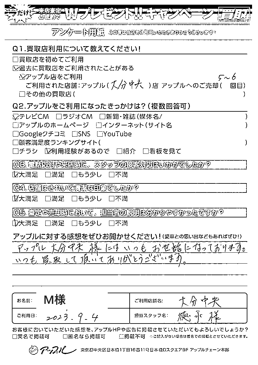 Aアップル大分中央店のご利用 5~6回目