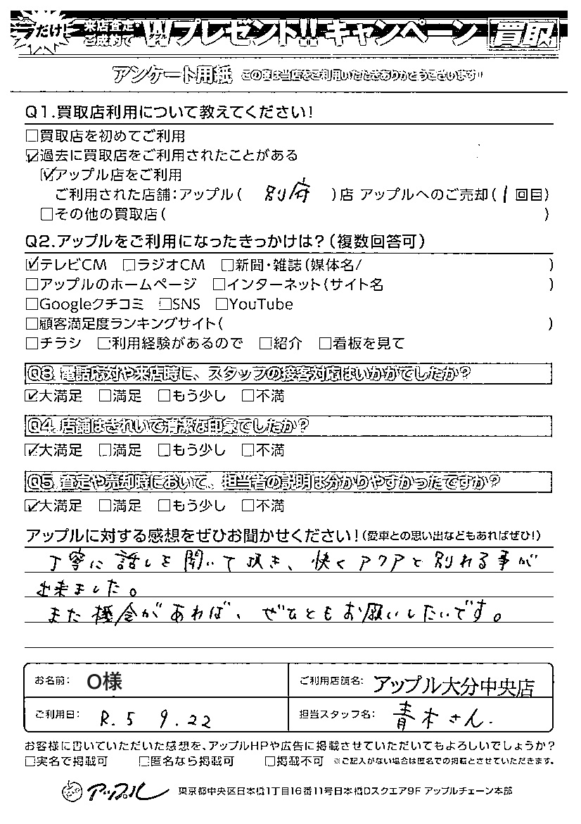 Q電話対応や来店時に、スタッフの接客対応はいかがでしたか?