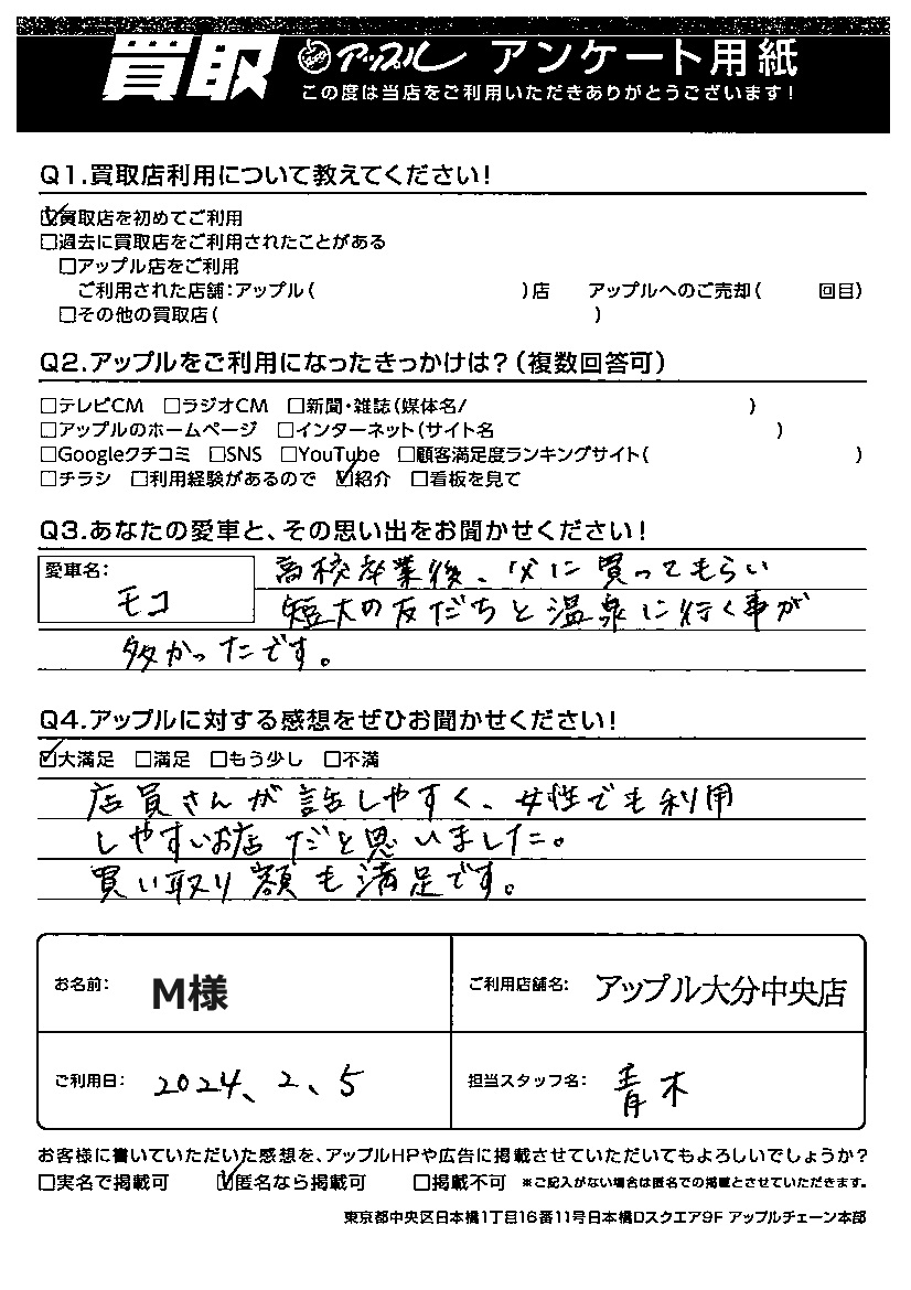 M様 車名:日産 モコ