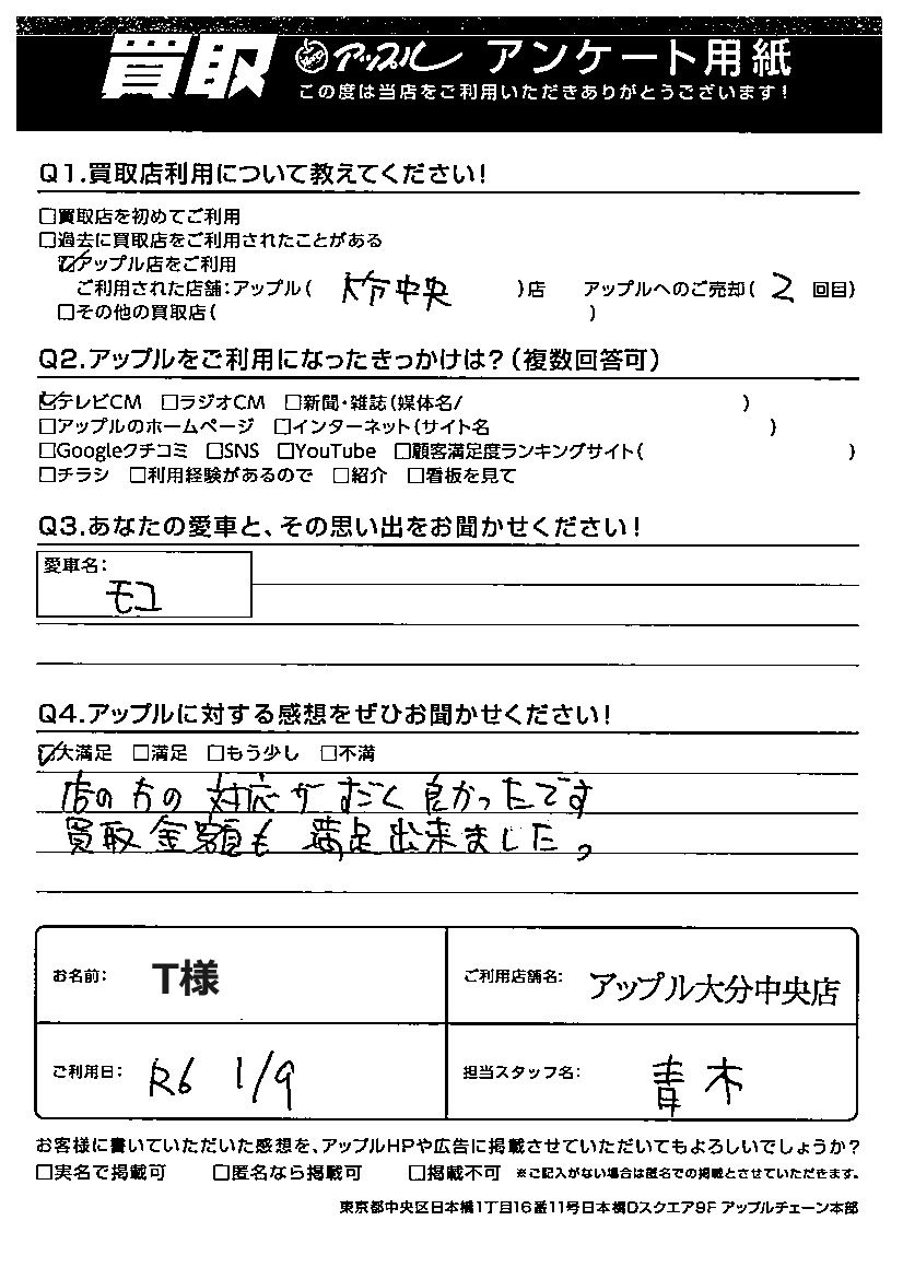 Aアップル大分中央店へのご売却2回目