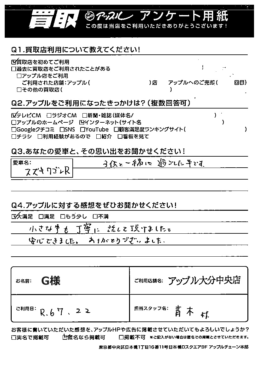 G 様 担当:青木