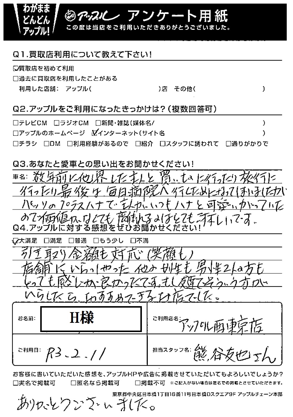 引き取り金額も対応(笑顔も)