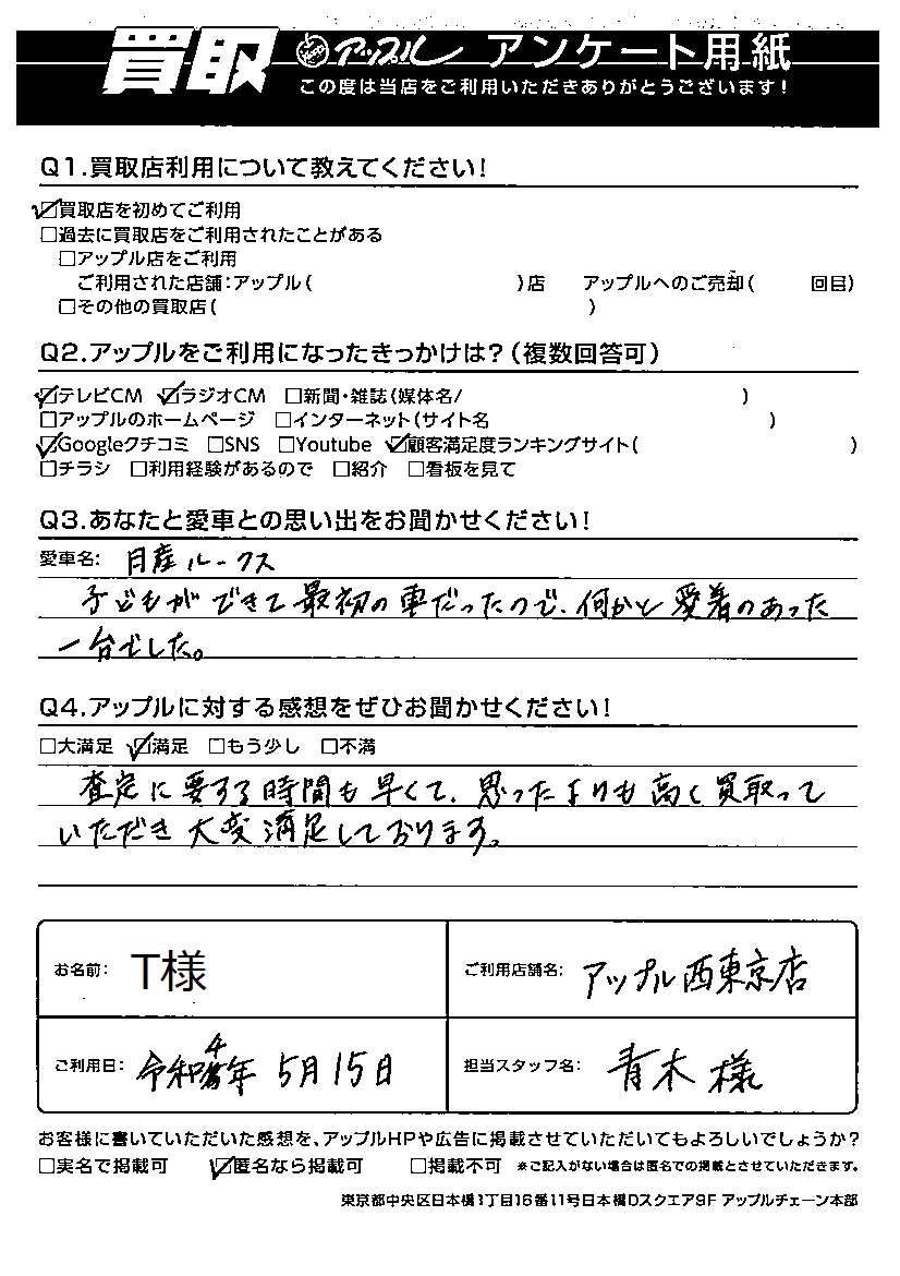 査定に要する時間も早くて、思ったよりも高く買取っていただき大変満足しております。