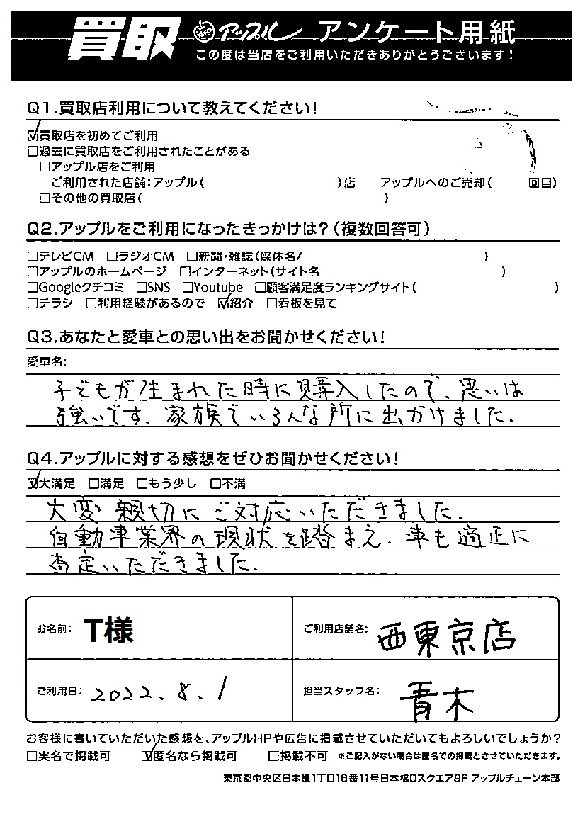 自動車業界の現状を踏まえ、車も適正に査定いただきました。