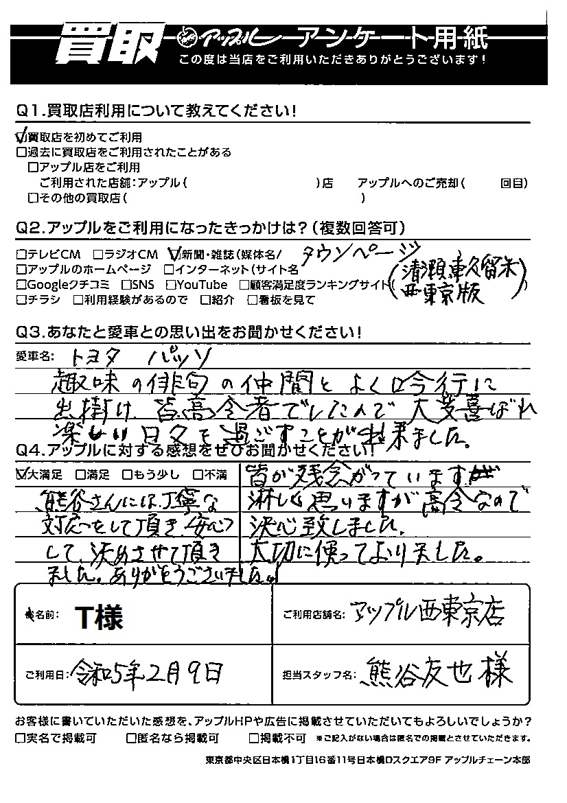 T様 車名:トヨタ パッソ