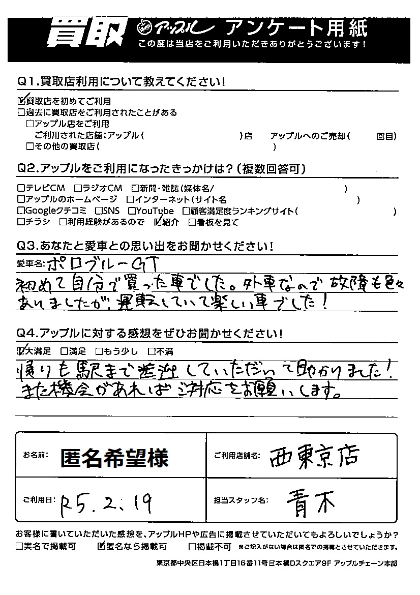 匿名希望様 車名:フォルクスワーゲン ポロ
