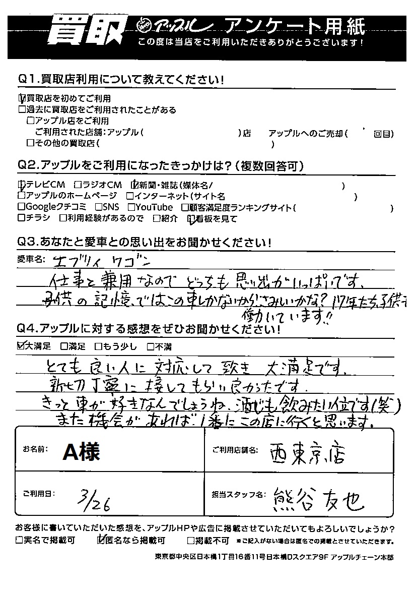 A様 車名:スズキ エブリイワゴン