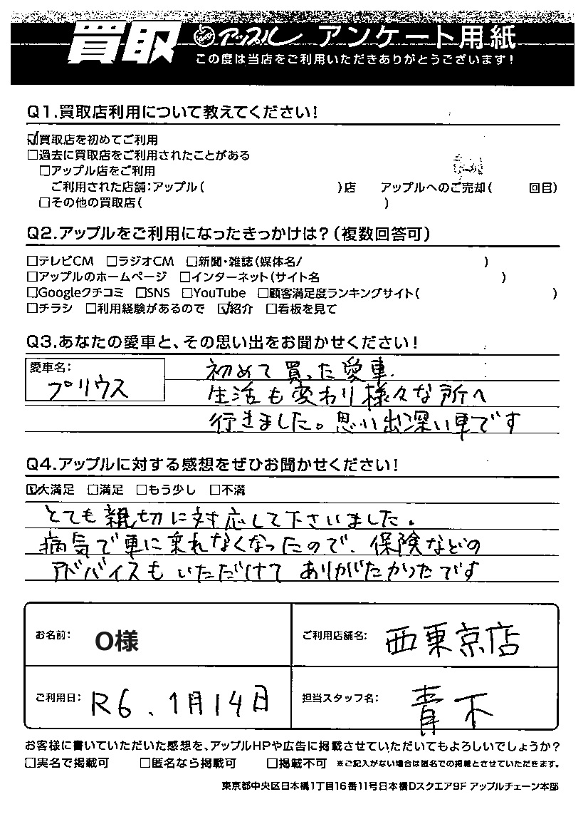 O様 車名:トヨタ プリウス(2023年3月~のPHVを含む)